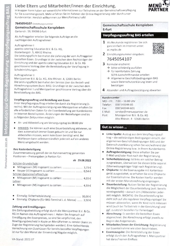 Anmeldung Schulverpflegung